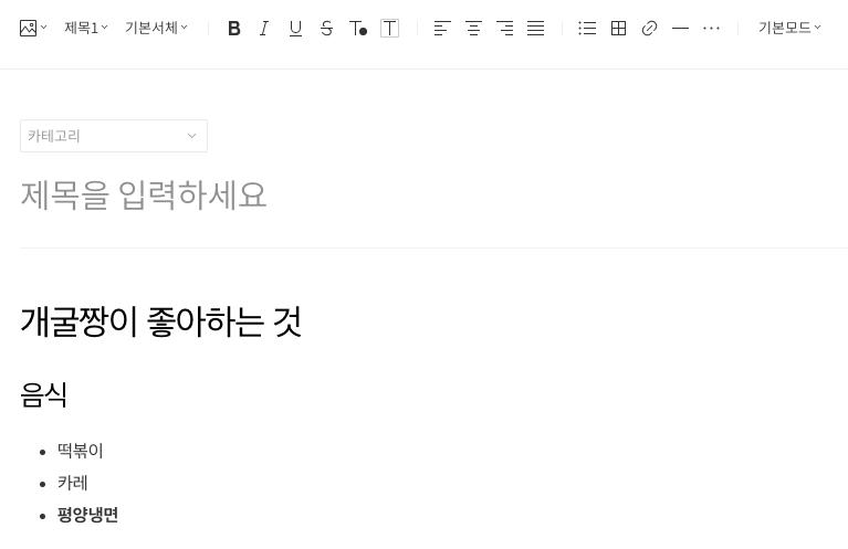 그래서 글을 쓰고, 중요한 부분은 볼드처리를 하고 글씨색을 변경하는 작업을 블로그 에디터로 할 수 있습니다.
