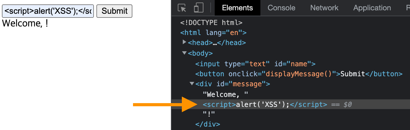 그러면 DOM에는 >script<로 작성되어서, 스크립트가 실행되지 않겠지요.