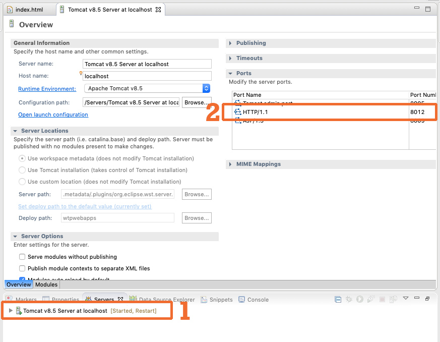 서버 탭에서 톰캣을 더블클릭하면 서버 상세내용이 나옵니다.