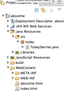 localhost:8012/aboutme/today 로 가면 TodayServelet.java 내용이 나옵니다. (제 포트번호는 8012입니다.)