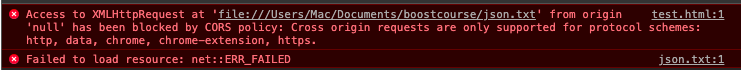 5. test.html 우클릭 > open with live server 하면 에러창이 나타나지 않고 데이터가 콘솔에 노출됩니다.