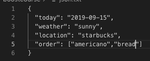 2. json.txt 파일을 생성하여 테스트 데이터를 작성합니다.